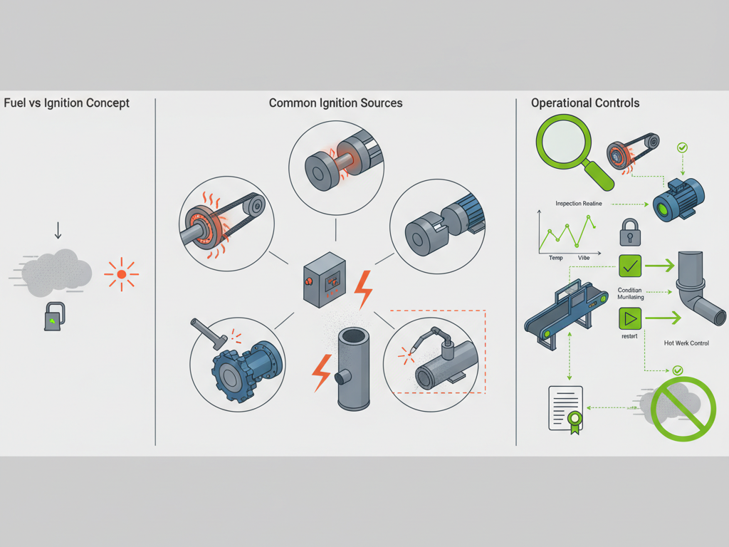 Dust is the fuel. Ignition sources are the match. In grain handling, ignition sources are often mechanical and preventable.